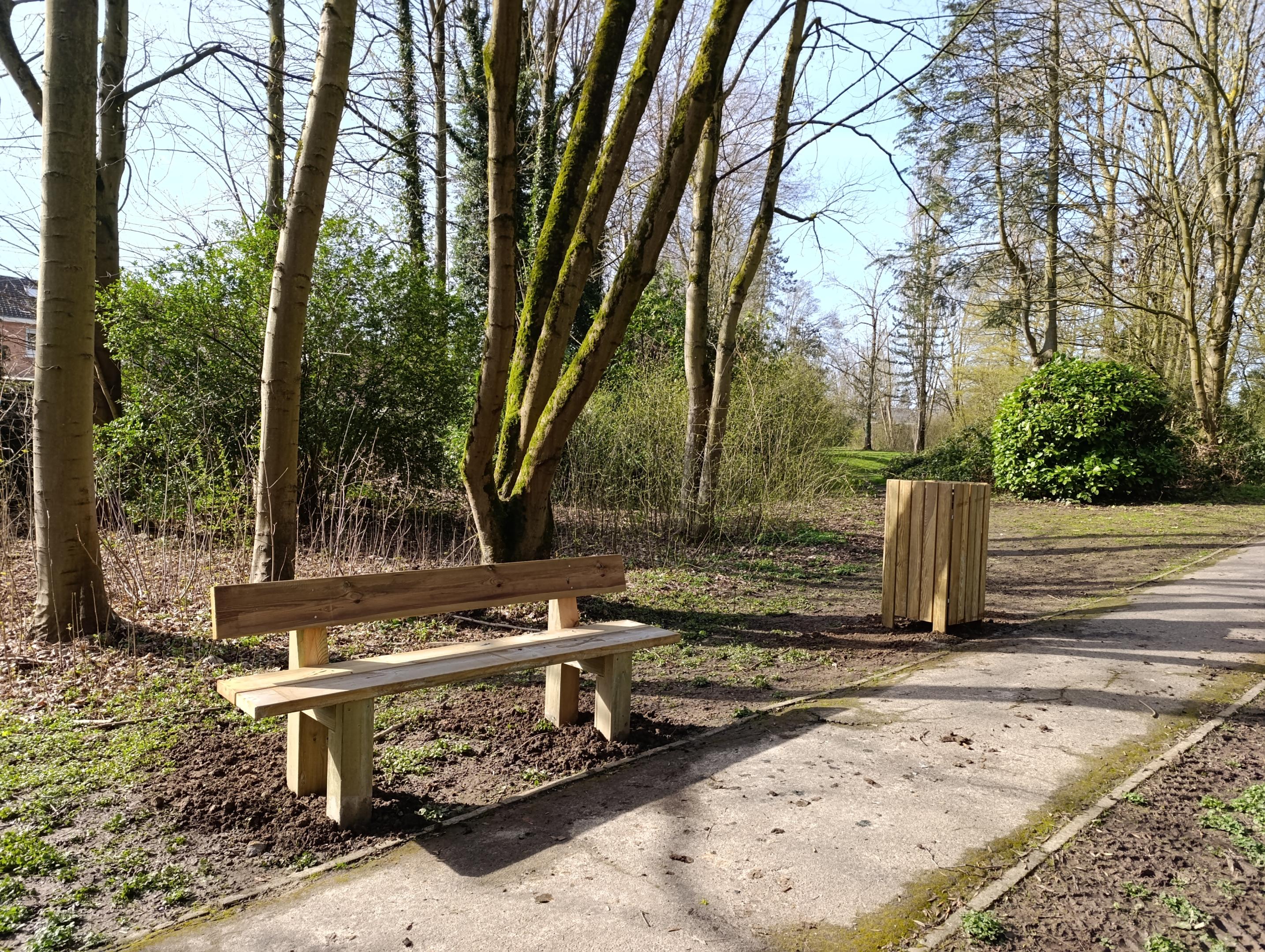 Puis, du mobilier "nature"en bois a fait son apparition dans les parcs et squares, telles que des corbeilles, tout comme des bancs au parc de la Butte ou au square des AFN.
