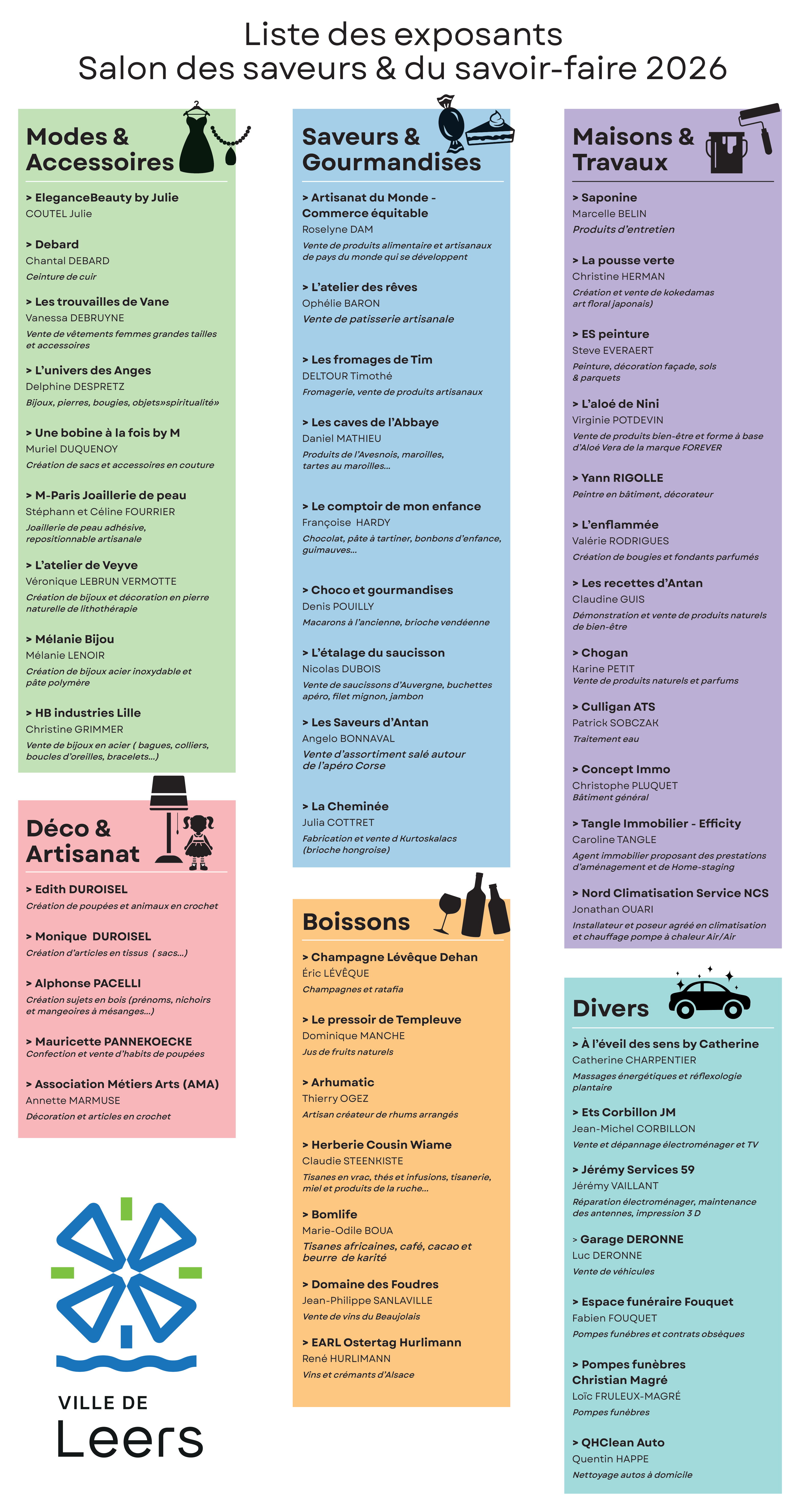Liste des exposants salon des saveurs et savoir-faire